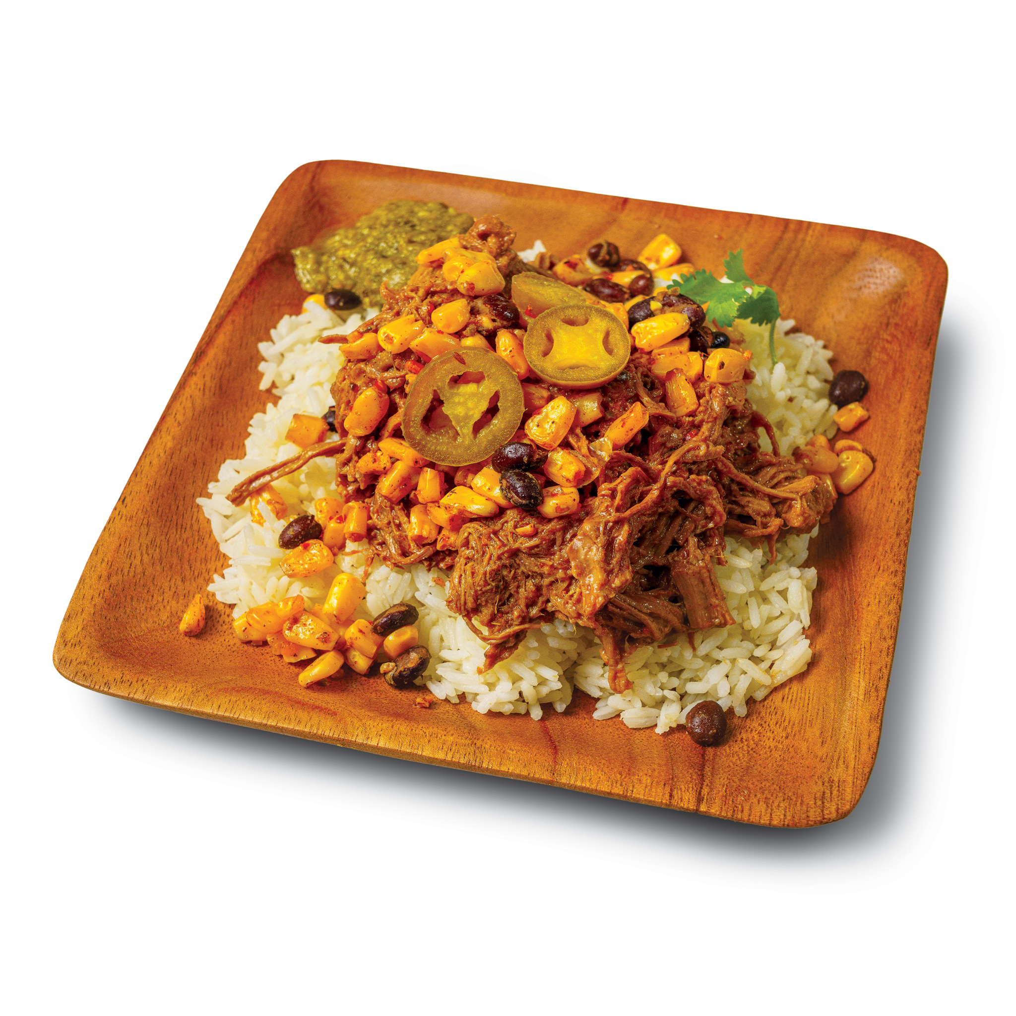 Enjoy the bold flavors of our Big Time Barbacoa Beef Bowl that brings the authenticity of traditional barbacoa to your table. Succulent beef, marinated with a rich blend of spices, paired with fluffy jasmine rice & vibrant vegetables.